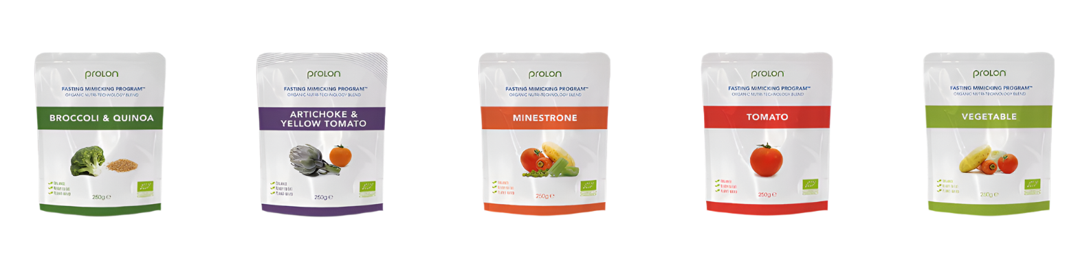 Discover the new line of READY TO EAT soups in the ProLon 5 Day Next Gen, Fasting Mimicking Diet Program. Thanks to our production with a short supply and the use of organic ingredients from Italian cultivation, each soup retains an authentic flavor and aroma.