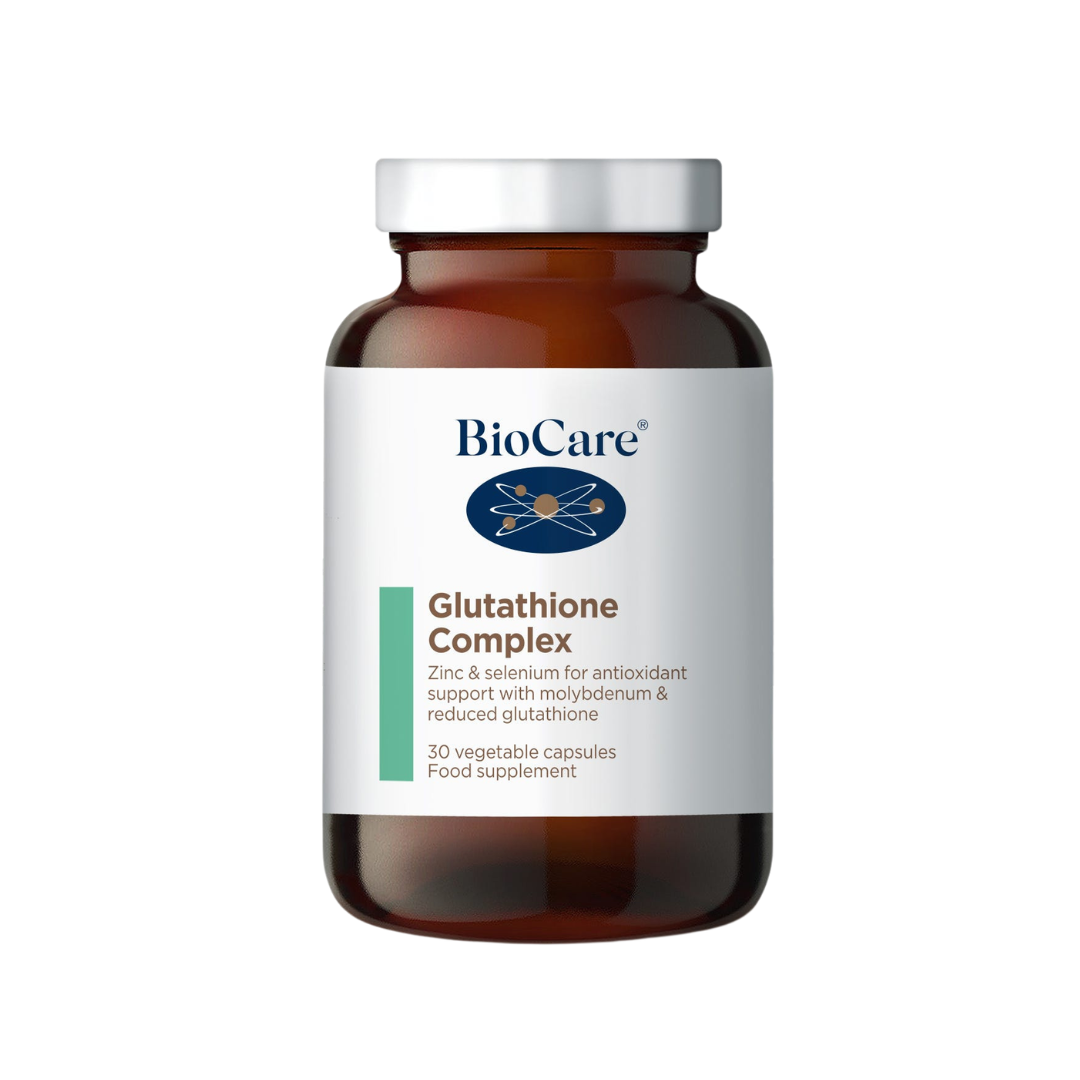 Το Glutathione Complex είναι μια μοναδική σύνθεση ισχυρών θρεπτικών συστατικών, όπως ψευδάργυρος και σελήνιο για αντιοξειδωτική προστασία, μολοβδένιο και βιταμίνη B6 για τον μεταβολισμό των θειούχων αμινοξέων και ανάγλυφη γλουταθειόνη.