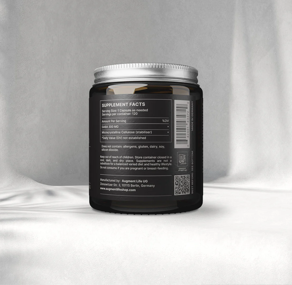 Ανακαλύψτε τις κάψουλες GABA 300 mg της Augment Life, ένα vegan συμπλήρωμα διατροφής σχεδιασμένο για να υποστηρίζει τη χαλάρωση, τη μείωση του στρες και τη βελτίωση της ποιότητας του ύπνου. Παρασκευάζεται στη Γερμανία.